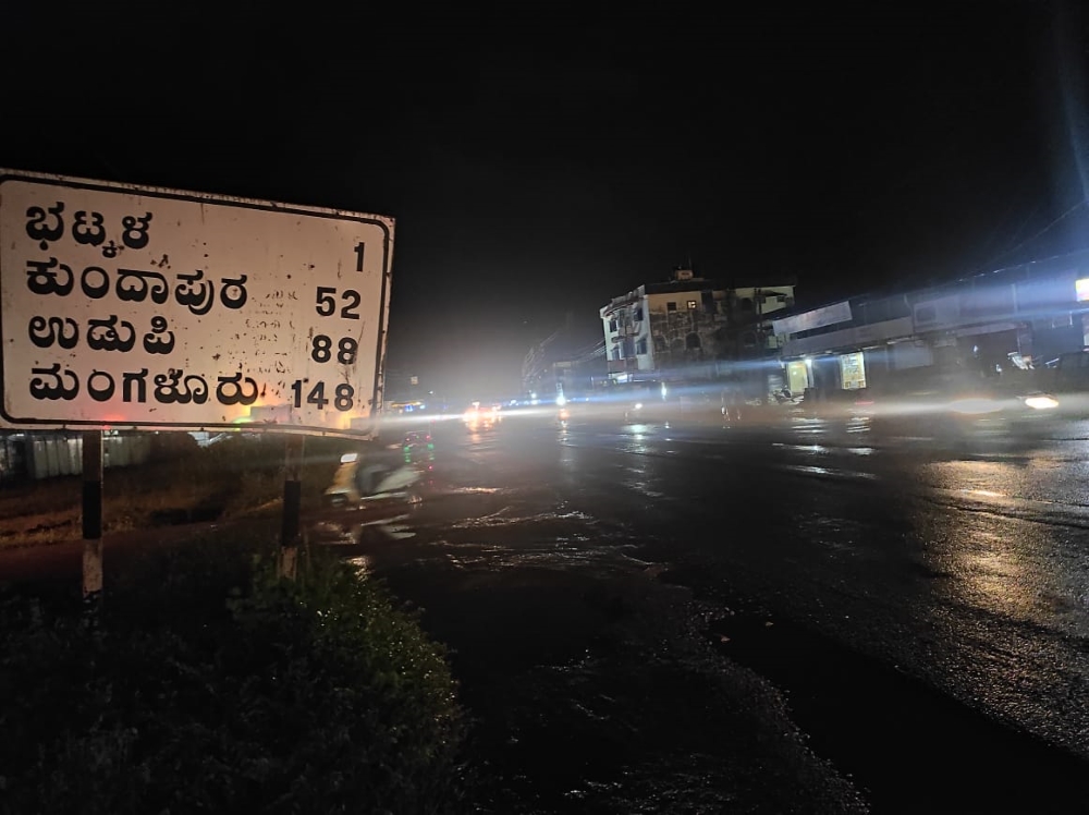 Bhatkal National Highway Enveloped in Darkness: A Nighttime View of Nawayat Colony, Madina Colony and Shamsuddin Circle